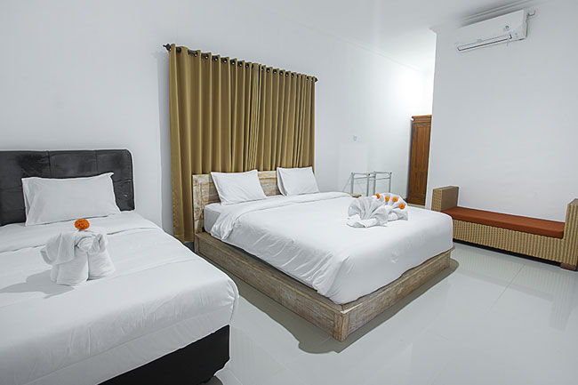 One Suite room available. Bigger space than Deluxe room. Each room equipped with comfortable double bed, one extra single bed, bigger closet, nightstand, chair and desk with drawers, hot/cold shower water, air condition, wifi with high speed internet, daily mineral waters, morning fruits, fresh towels, sofa, fridge and TV.