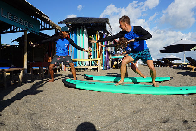 Surf lesson is available at Pita's Warung, Batu Bolong beach, Canggu, Bali. Own by Nengah Sundarini. The surf guides are locals and professionals with years of surfing experiences at their home breaks (Batu Bolong and Echo beach). Our friendy surf guides will show you how to surf with their smile and positive vibes. If you have never surf before, this surf lessons will be best for you, because our surf guides will show you safe surf spot in the right conditions for beginner surfers.